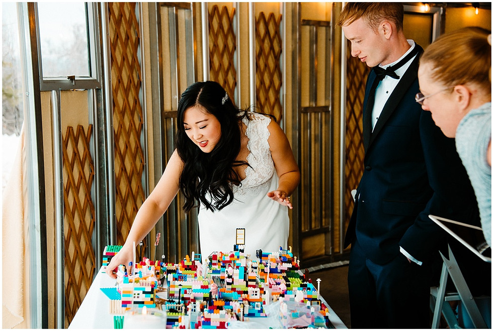 After the ceremony we relocated to their reception in a large yurt (yes, a yurt!) on the other side of the resort. This is where the party really started, complete with a full pizza bar, drinks, live music, and a Lego contest. Yes, you heard me right, a Lego contest! Guests were instructed to build a future house for Jandi and Carl out of Legos, then the couple judged the houses and chose their top three to receive some fabulous prizes. Jandi & Carl finished the night with a beautiful first dance, cake cutting (where they did NOT smear it all over their faces), and some quality time with family and friends. I loved being able to join them as their Wedding Photographer!