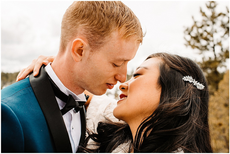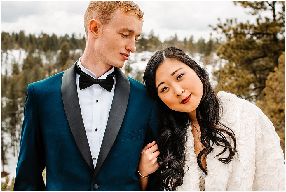 We started the day a little worried that we wouldn't be able to find a good place for bridal photos - the unexpected amount of snow and rain made a lot of the resort a bit of a muddy mess. Lucky for us, an amazing employee piled us in a big 4-wheeler and drove us through the mud to a beautiful mountain overlook where we found some solid ground and an incredible view. I'm sure this was a first for that employee, so I hope he enjoyed watching me make a fool of myself while Jandi and Carl looked like a couple straight from a magazine.